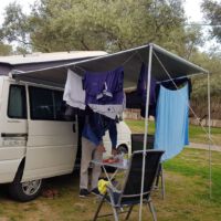 Nach 40 Minuten Busfahrt (das „Bus klarmachen“ funktioniert super, als wären wir ein eingespieltes Team, das sein Leben lang im Bulli umhergetingelt wäre. Ich habe die Prüfung mit Bravour bestanden!) kommen wir auf einem supergepflegten, superfreundlichen, supergemütlichen Campismo an und beziehen nach herzlicher Begrüßung und Einweisung auf Englisch (keinesfalls eine Selbstverständlichkeit!) unseren neuen kuscheligen Platz unter einem Olivenbaum (hach, ist das romantisch!!).
