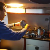 Christian zeigt mir voller Stolz sein neues Zuhause – wie er sich eingerichtet hat, wo was liegt und steht und wir trinken zur Begrüßung auf der „Terrasse“ erst mal ein Tässchen Rotwein und Limoncello (ein Geschenk an mich aus Italien!) – natürlich stilecht aus Plastikbechern!
