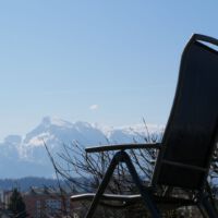 Mein Campingplatz liegt schön oberhalb von Salzburg, mit Blick auf ein beeindruckendes Gebirgsmassiv.
